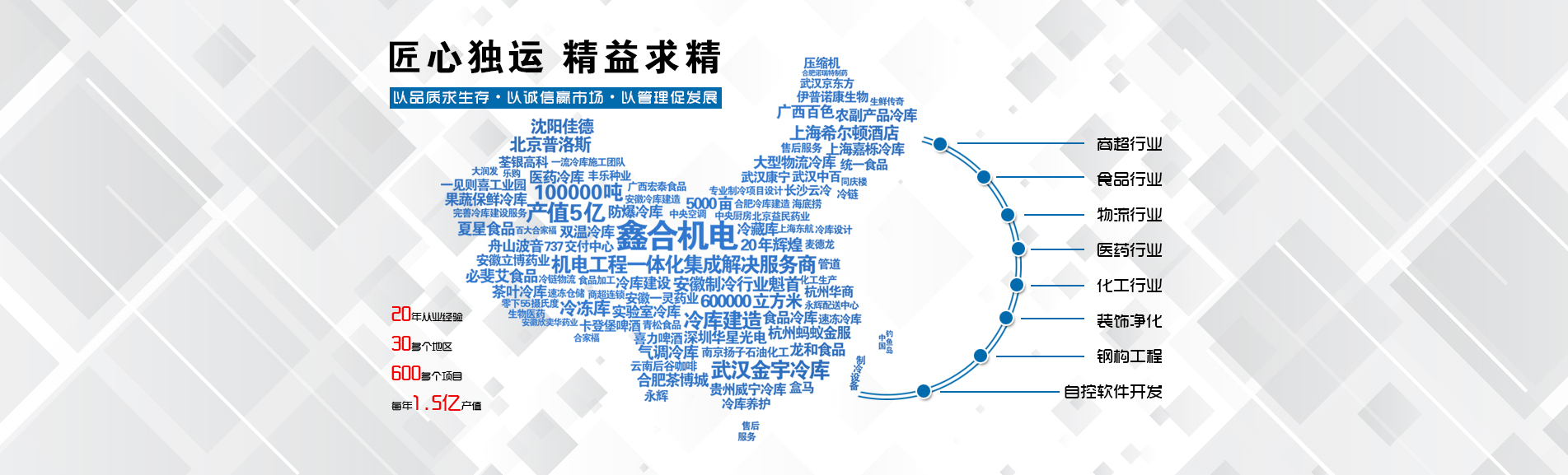安徽鑫合機電設備有限公司于2002年組建運營,專業從事冷凍、冷藏庫、中央空調、醫藥凈化工程的規劃設計、施工承建、售后服務為一體的綜合性工程公司,與100多家實力雄厚的大中型企業建立長期產略合作關系,其中有多家世界500強和上市企業。公司作為中國倉儲與配送協會會員單位、安徽省制冷學會理事單位、上海楊浦區制冷協會工程總承包負責單位,引領于行業前沿。我們將銘記給予我們大力支持的各界新老朋友及合作伙伴,我們將會保持“互惠互利、共同發展”的原則與您共創雙嬴的合作關系。